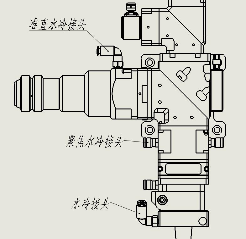 水冷固定板上,有進(jìn)水口和出水口。建議功率高于1000瓦時(shí),啟用水冷裝置。此外,本系列切割頭功率不能大于2000瓦。管道結(jié)構(gòu)請參考圖4。